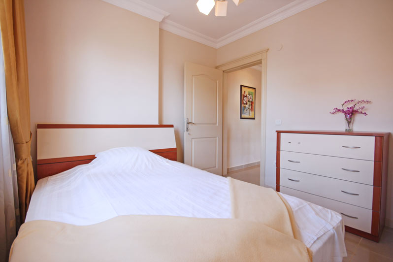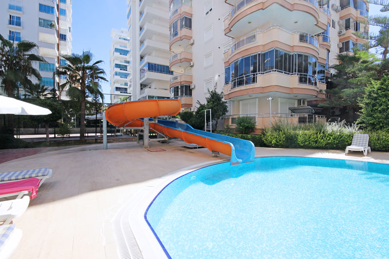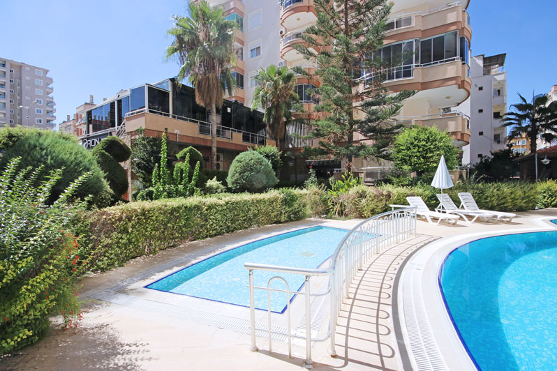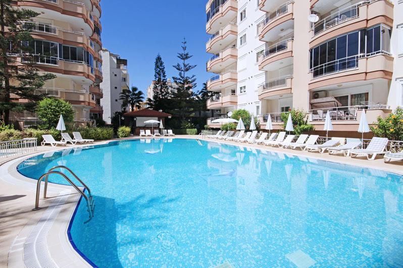 This well-maintained complex is surrounded by hedged pathways, with an outside BBQ, ball court, and fitness and sauna facilities. There is, of course, an enticing swimming pool and sun terraces, but the glorious sandy beach is just a short stroll away across the road. Local markets, restaurants and bars of Mahmutlar are right on the doorstep, and the cultural sights of Alanya centre are just 12km away by road.