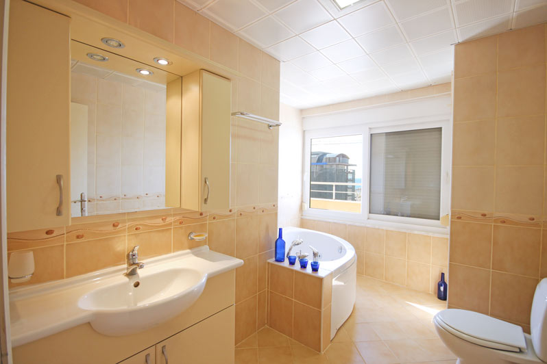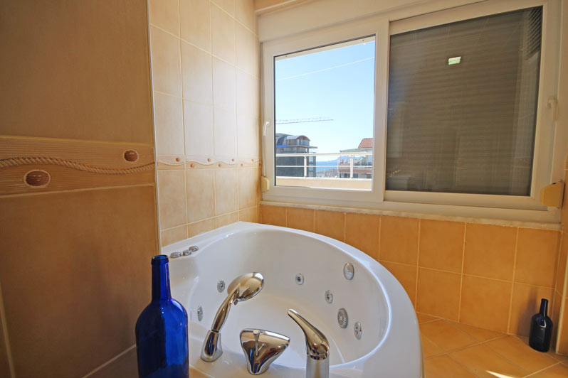 The entrance hall has plenty of storage space and a family bathroom with a walk-in shower. There are also 2 double bedrooms on this lower level, one with an ensuite and a private balcony. A marble staircase leads to the upper level, where there are two generously sized double bedrooms and a luxurious bathroom with a jacuzzi bath. Both bedrooms open onto a stunning roof terrace with a wonderful panorama and plenty of room for whiling away the days at home.