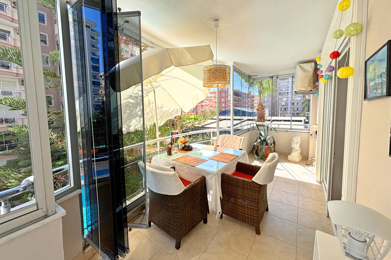 This 120m2 property offers a relaxing lifestyle in a well-maintained complex with on-site facilities. There is a beautifully designed open-plan living space that combines an inviting lounge and dining area with a chic kitchen, which blends perfectly with the decor. Outside is a curved, fully enclosed balcony, providing the perfect place for relaxing or entertaining. From here, you can enjoy lovely views over the local area and swimming pool. The entrance hallway leads to a family bathroom, a large double bedroom and a spacious master bedroom with ensuite facilities and a private balcony.