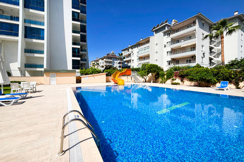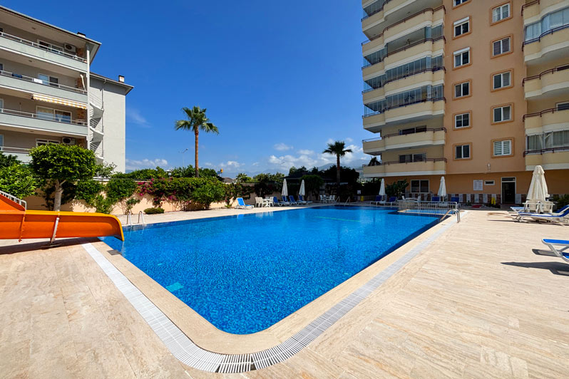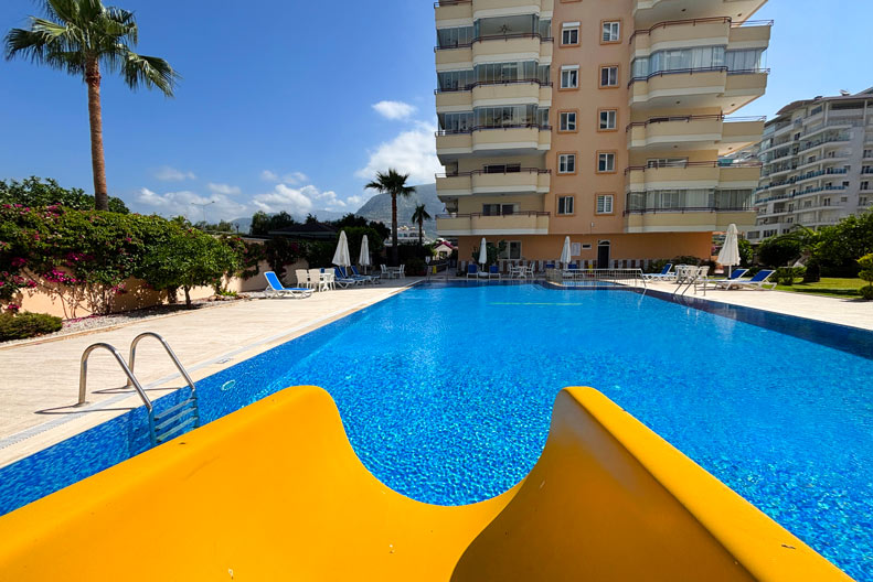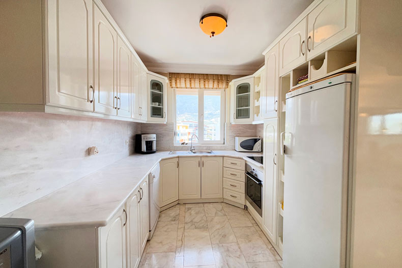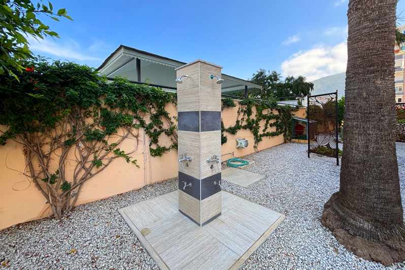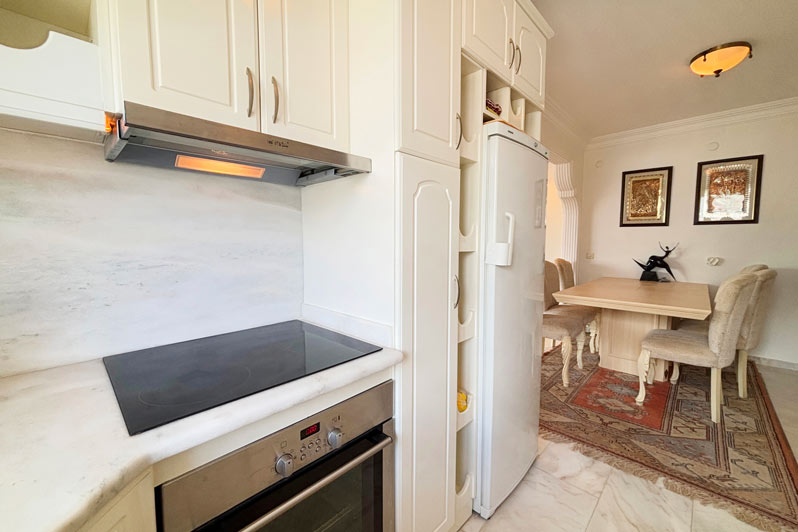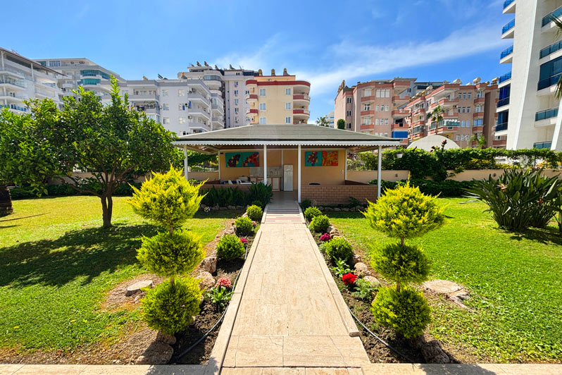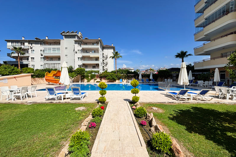 This lovely complex is surrounded by gardens, with a BBQ and meeting area, gym, table tennis room, and private garages. There is, of course, an enticing swimming pool, sunbathing terraces and showers outside, but the sandy coastline is only a 350m stroll away. Shops, markets, restaurants, and bars are right on the doorstep, and the sights and sounds of Alanya are just 9km away by road.