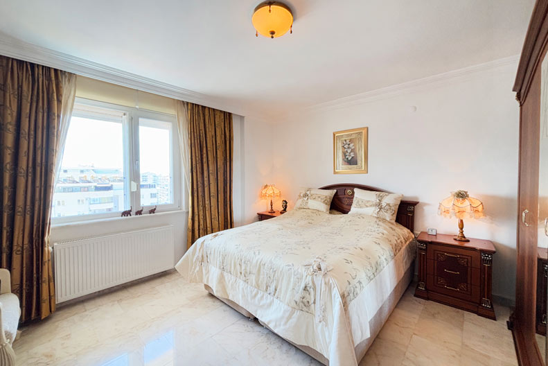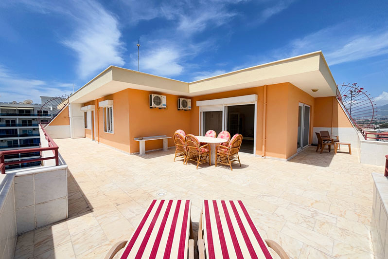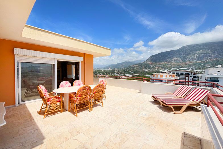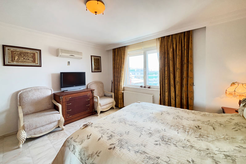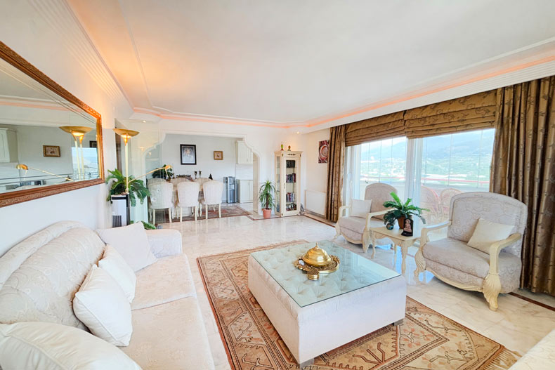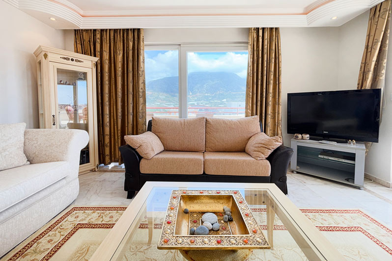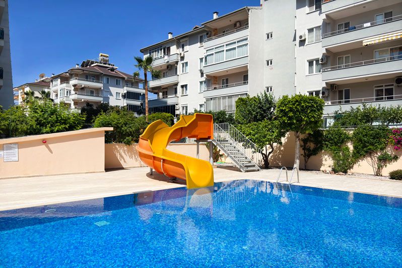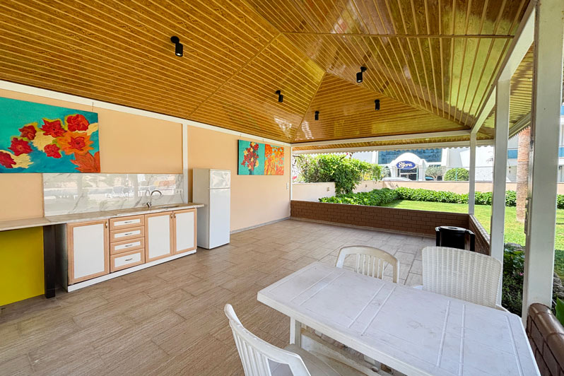 This lovely complex is surrounded by gardens, with a BBQ and meeting area, gym, table tennis room, and private garages. There is, of course, an enticing swimming pool, sunbathing terraces and showers outside, but the sandy coastline is only a 350m stroll away. Shops, markets, restaurants, and bars are right on the doorstep, and the sights and sounds of Alanya are just 9km away by road.