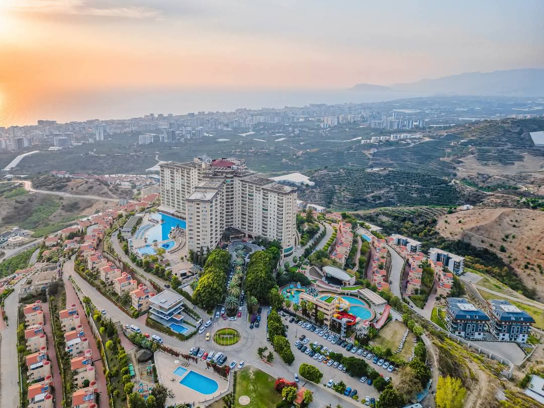 This 3+1 apartment in Alanya is located in the famous 5 star hotel complex Goldcity in Kargicak! Goldcity is only 14 km away from Alanya and 2,8 km from the beach. The next downtown is in Mahmutlar which is only 2 km away. There you can find many shops, restaurants, cafes, supermarkets, bazar, banks, doctors and pharmacies.
