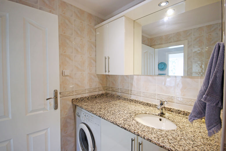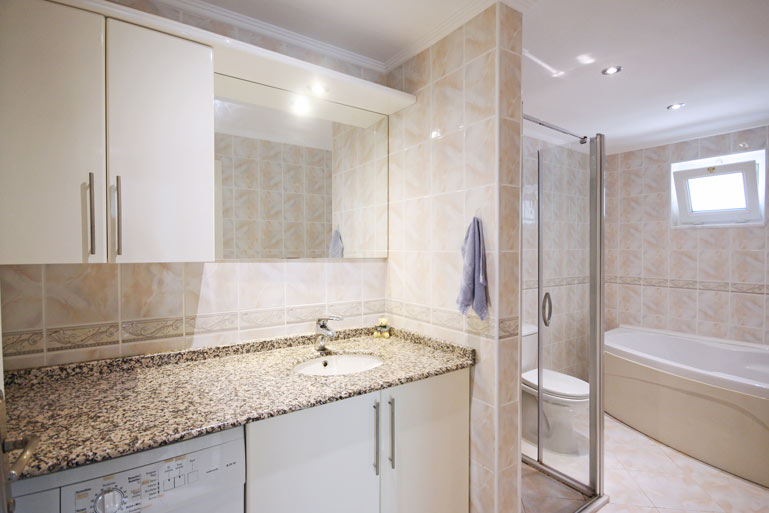 This property is located in a beautifully designed complex, surrounded by gardens, and with a private outlook. The front door opens directly into 90m2 of beautifully furnished open plan space. There is a large combined living and dining area, which has two sets of patio doors onto the balcony, and a compact American style kitchen at one end. From here is a hallway which leads through to 2 good sized double bedrooms, and a family bathroom with shower and jacuzzi bath.