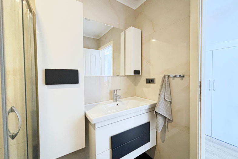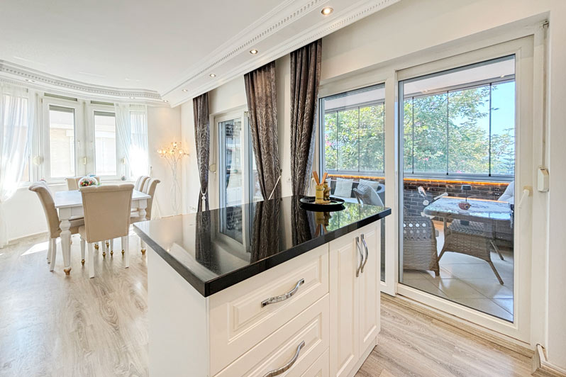 The property is on a well-maintained complex with a gorgeous swimming pool and wide sun terraces, tennis court and gym. Kargicak itself is a quiet rural area with a spectacular shoreline and country landscape. There is a small local centre nearby with grocery shops, restaurants and bars, and the nearest town of Mahmutlar is just 3.8km away.