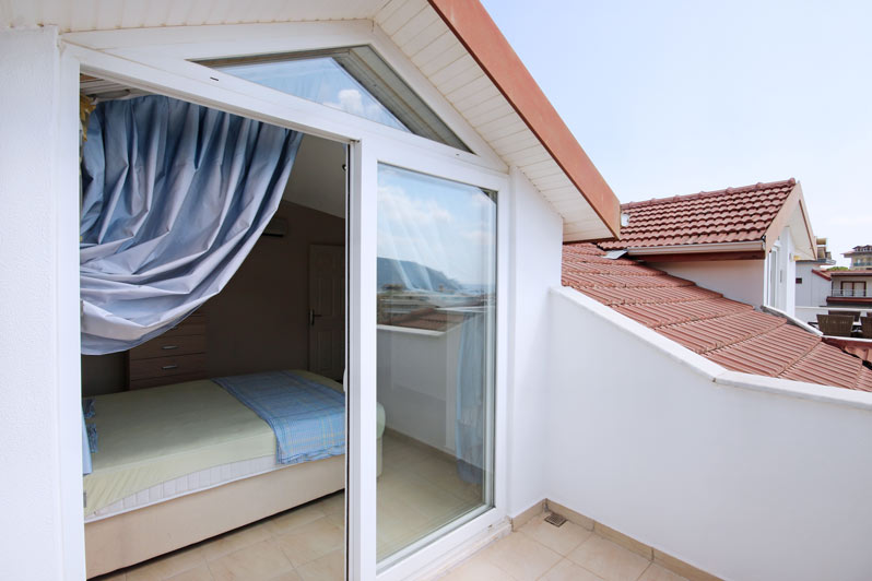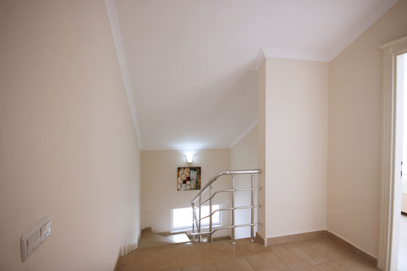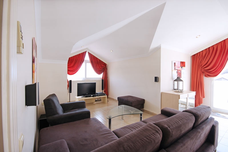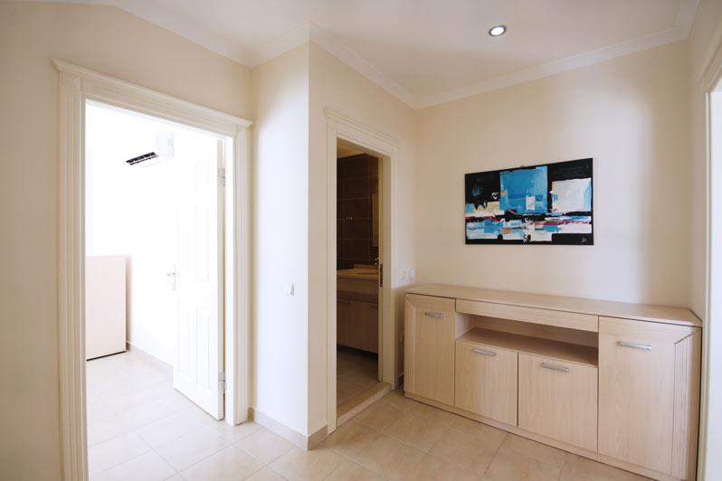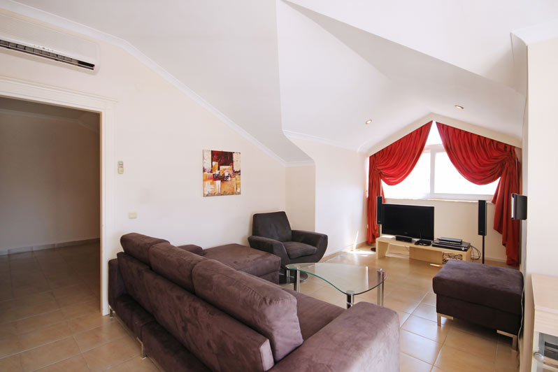 On this lower floor, there are also a guest bathroom and 2 bedrooms, both with small balconies and one with ensuite facilities. A marble staircase in the entrance hallway leads to the upper level, where 2 more beautiful bedrooms are nestled in the property’s eaves. There is also a family bathroom and a spacious 5th bedroom which is currently used as an extra lounge. This handy room opens onto a large sun terrace, providing the ideal place to relax or enjoy the sunsets.