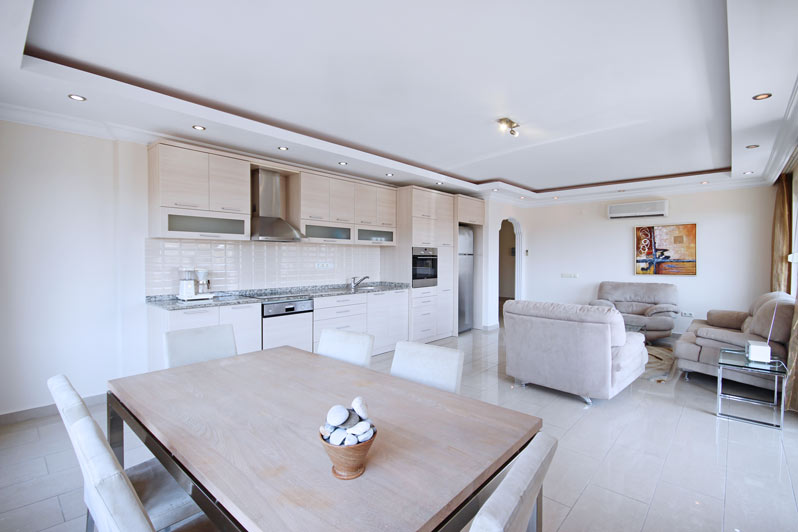 This luxurious 215m2 property offers everything you need to unwind and enjoy life to the full. The hub of this lovely home is a bright, welcoming lounge with a dual aspect and to the rear is a modern kitchen and cosy dining area. Outside is a wide balcony stretching around both sides, perfect for al fresco life. From here, you can see the complex’s inviting aqua swimming pool, tiled sunbathing terraces and gazebo.