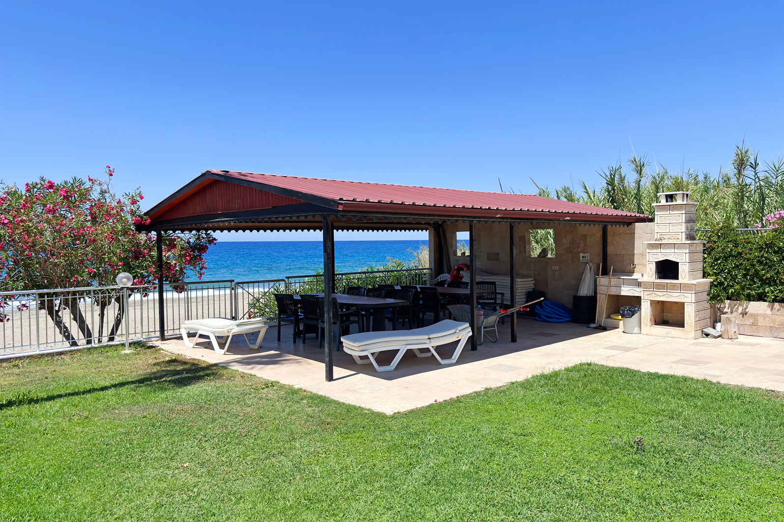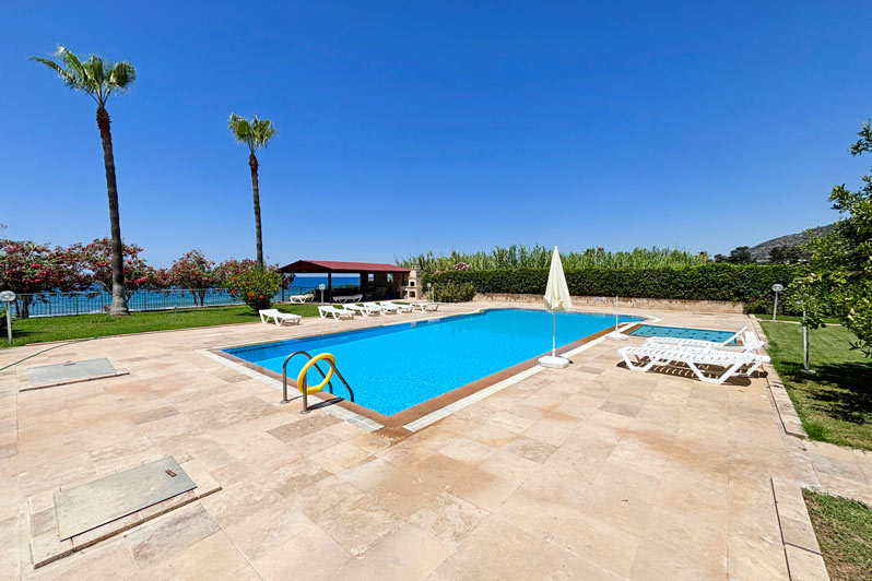 Situated in a peaceful area, this small, exclusive complex has everything you need right on the doorstep. There is an inviting swimming pool, sun terraces, showers and lawned gardens outside, together with a BBQ area and covered private parking. The lovely sandy beach is literally just a step away. Only 19km from Alanya centre, this neighbourhood tempts with its exceptional landscape, and the local town centre offers markets, amenities, and numerous dining options. Whether you seek tranquillity or the thrill of nature, Demirtas provides a harmonious balance that caters to every desire.