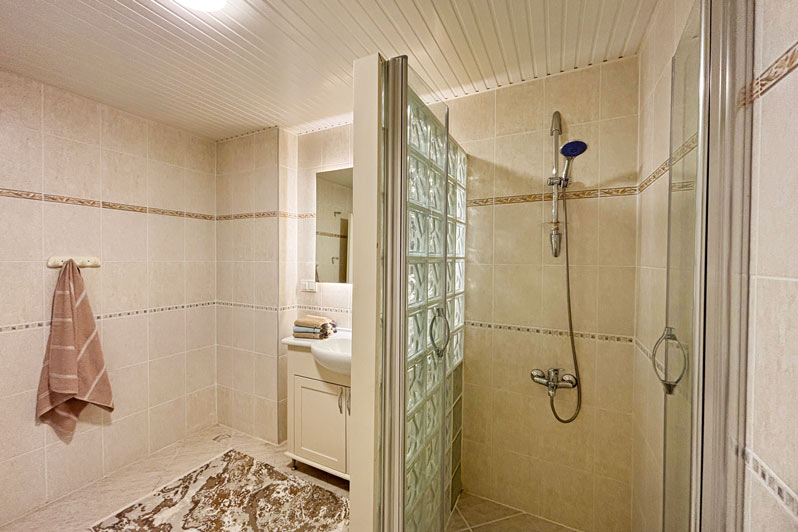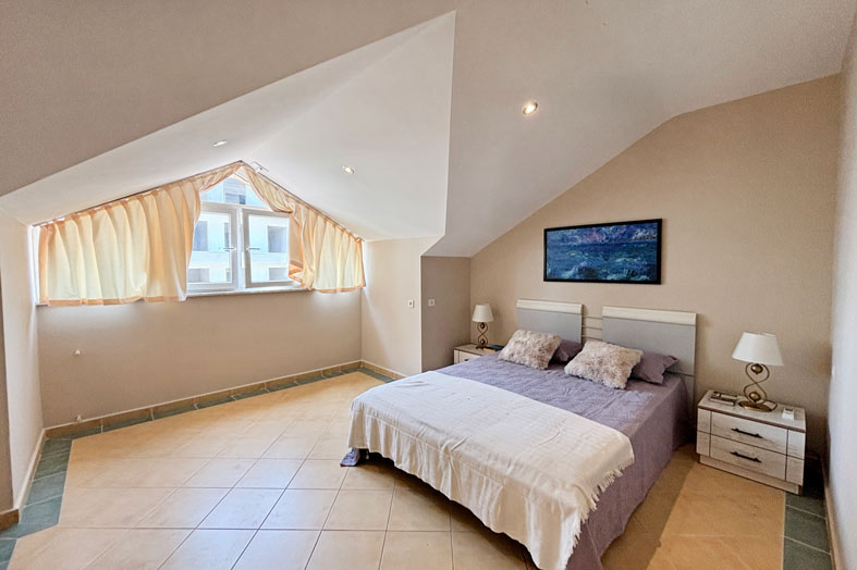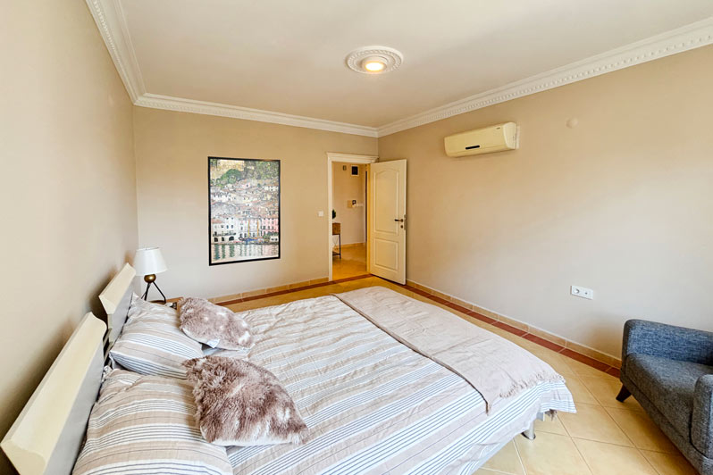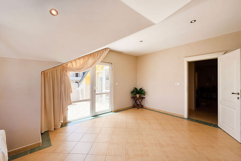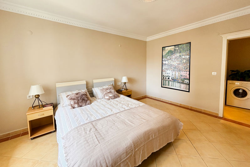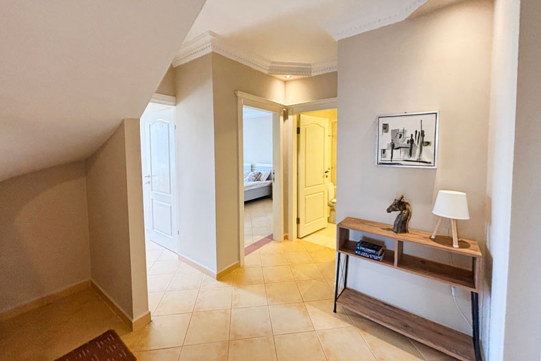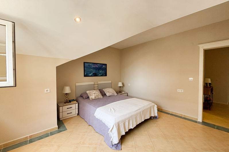 Also on this lower level is a double guest bedroom, a separate sitting room with access to a small balcony, and a beautifully tiled bathroom. A marble staircase from the hall leads to the upper floor, which features 3 additional double bedrooms and a beautiful family bathroom. The master bedroom is an impressive size and opens onto a fabulous roof terrace.