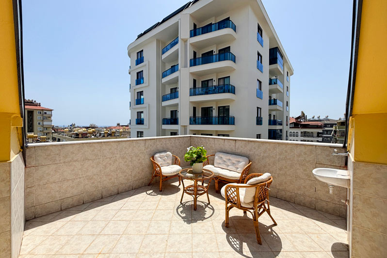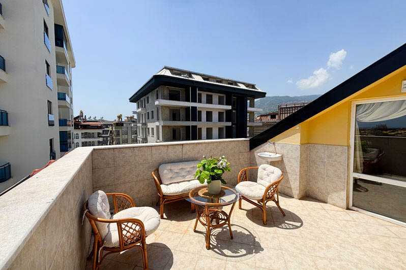 This delightful penthouse property is situated in a highly desirable location, just 650m from the sandy beach and blue sea. It is just a short walk to the numerous shops, bars, restaurants and the famous Friday market. Alanya is a vibrant town with all the amenities you need close by. For those interested in nightlife or history, it is only 1km from the centre of Alanya with its discos, picturesque harbour and dramatic castle.