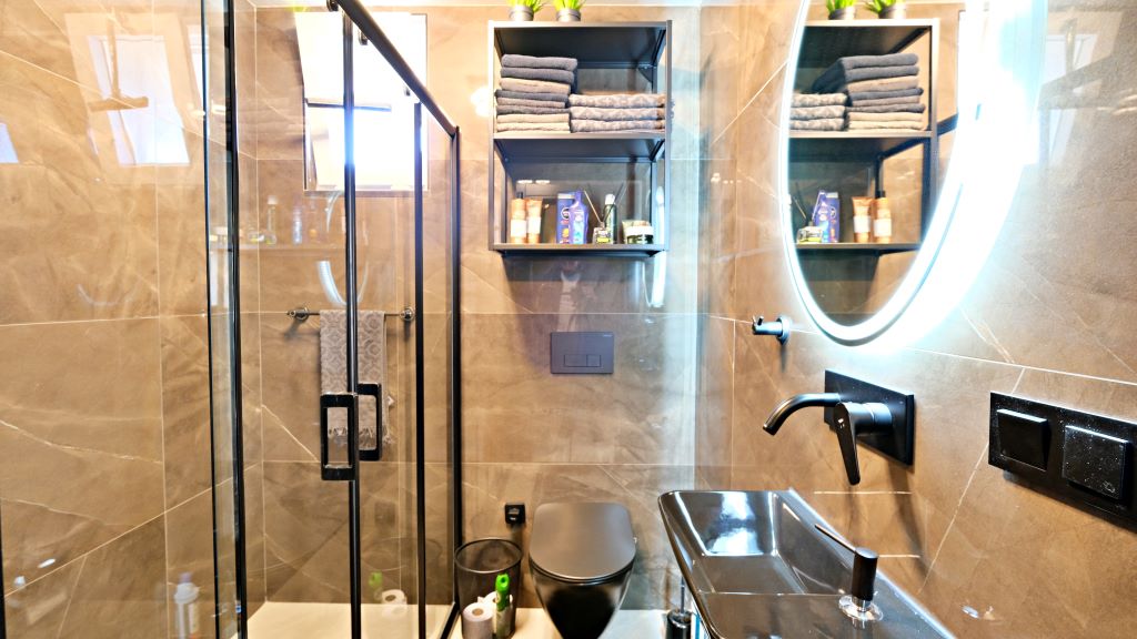 On the top level are 2 generous sized double bedrooms, a modern bathroom with shower, washingroom and 2 balconies.