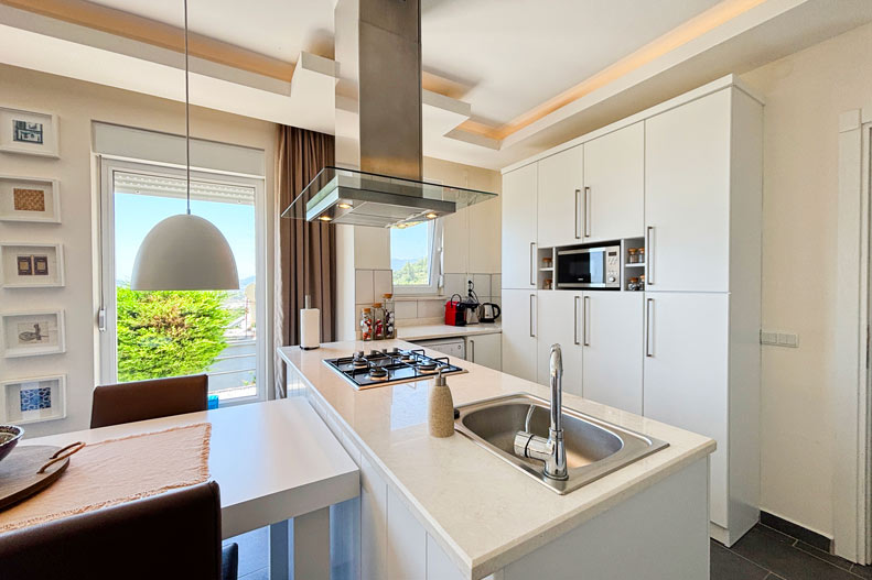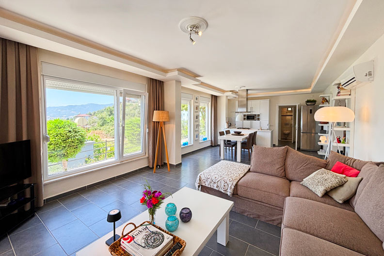 This fabulous villa is ideally situated on a private 1725m2 plot in an incredible setting, which is not overlooked. Easy access to the local road and private parking make it the ideal getaway and a deluxe retreat from which to explore this beautiful area. If you ever tire of this calming lifestyle, the unspoilt sandy beach and blue sea are just over 2km away. The charming local town centre of Kestel, which has a variety of shops and restaurants, is also just 2km away, and it is only 9km by road from the vibrant centre of Alanya and its many cultural attractions.