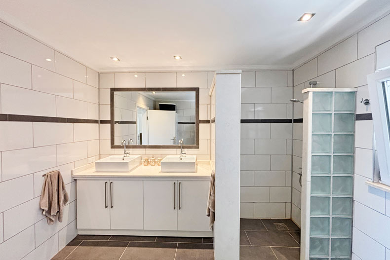 This stunning single-storey modern 135m2 property has a unique design and a fabulous rural outlook, cleverly blending contemporary and rustic living. The heart of the home is a welcoming, open-plan living space. There is a sunny lounge area at one end and floor-to-ceiling windows and doors flooding in light and the scenery. At one end is a cleverly concealed fitted kitchen that blends perfectly with the decor. Separated by a handy cooking island, there is also a cosy family dining area. An archway from nearby leads back into the large, airy entrance hall, which has plenty of extra storage space. There is also a small guest bathroom, a beautifully tiled family bathroom and 2 spacious double bedrooms.