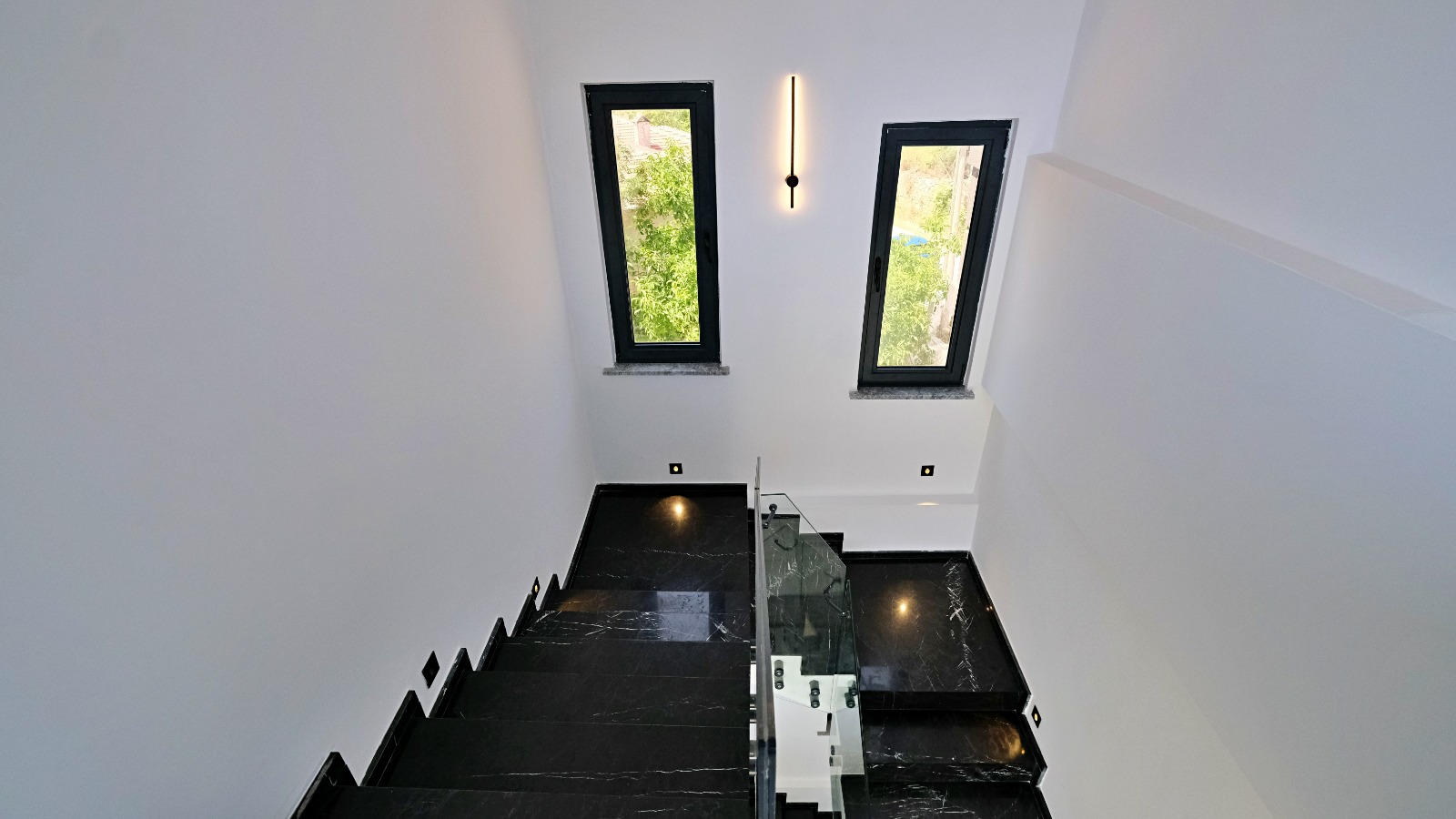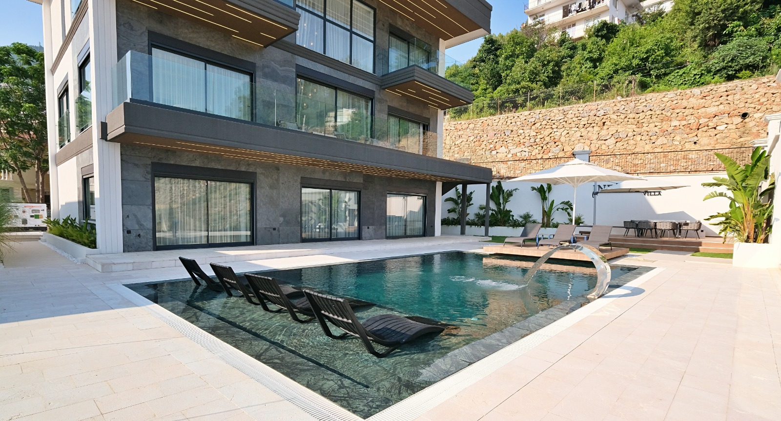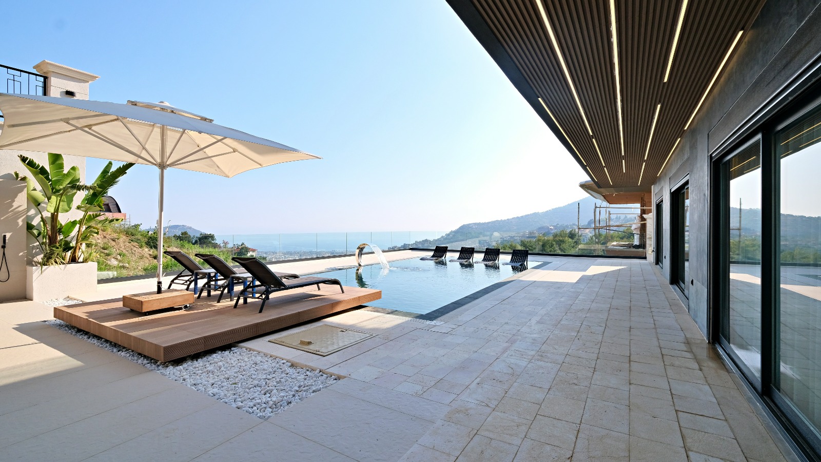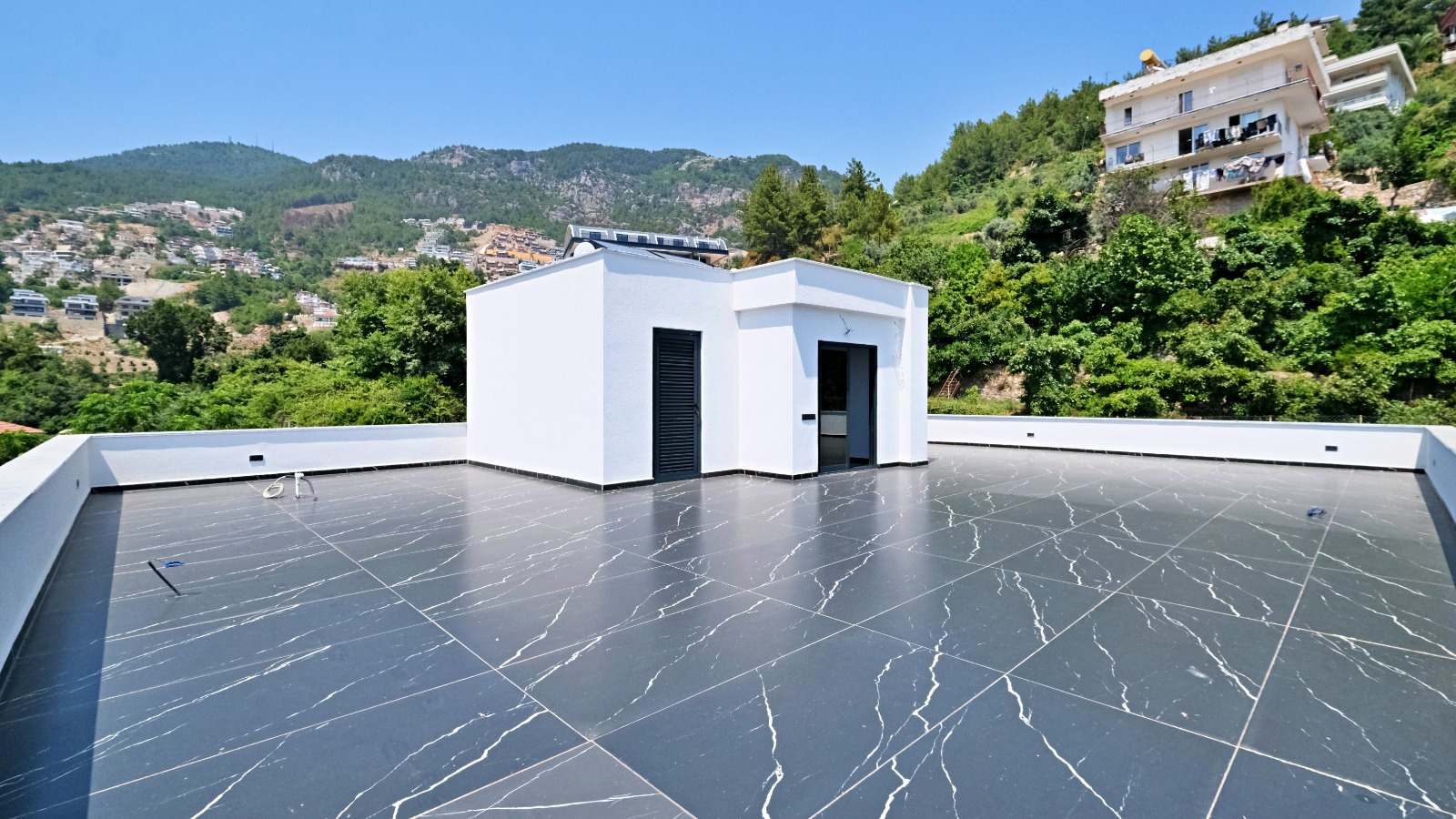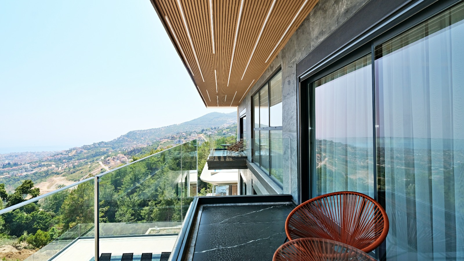 The villa is located in Bektas in the Alanya mountains about max 10 minutes by car to the city center. The villa is 525 square meters divided in 4 floors – from all floors there is stunning view; all over the city, mountains, Alanya Castle and the Mediterranean.