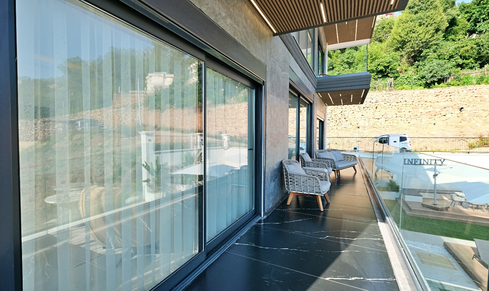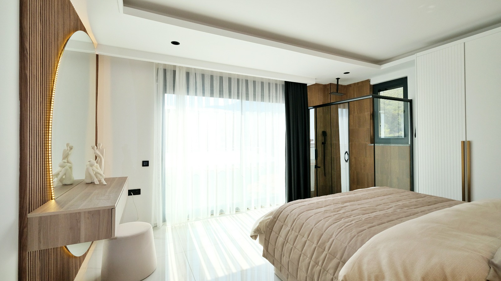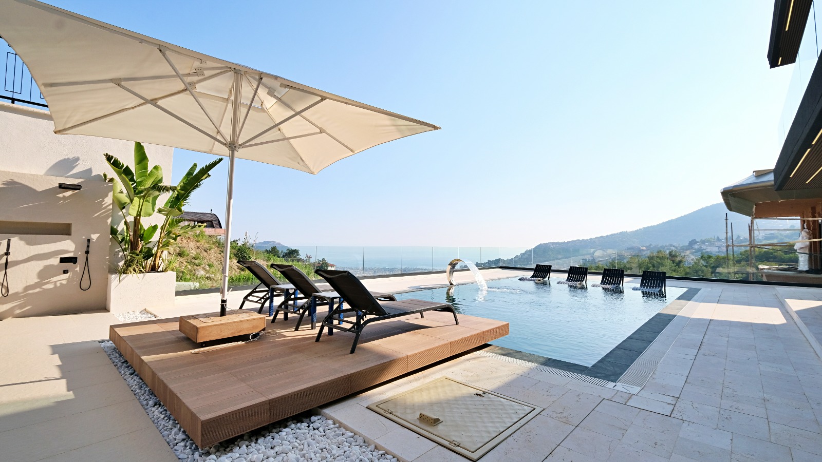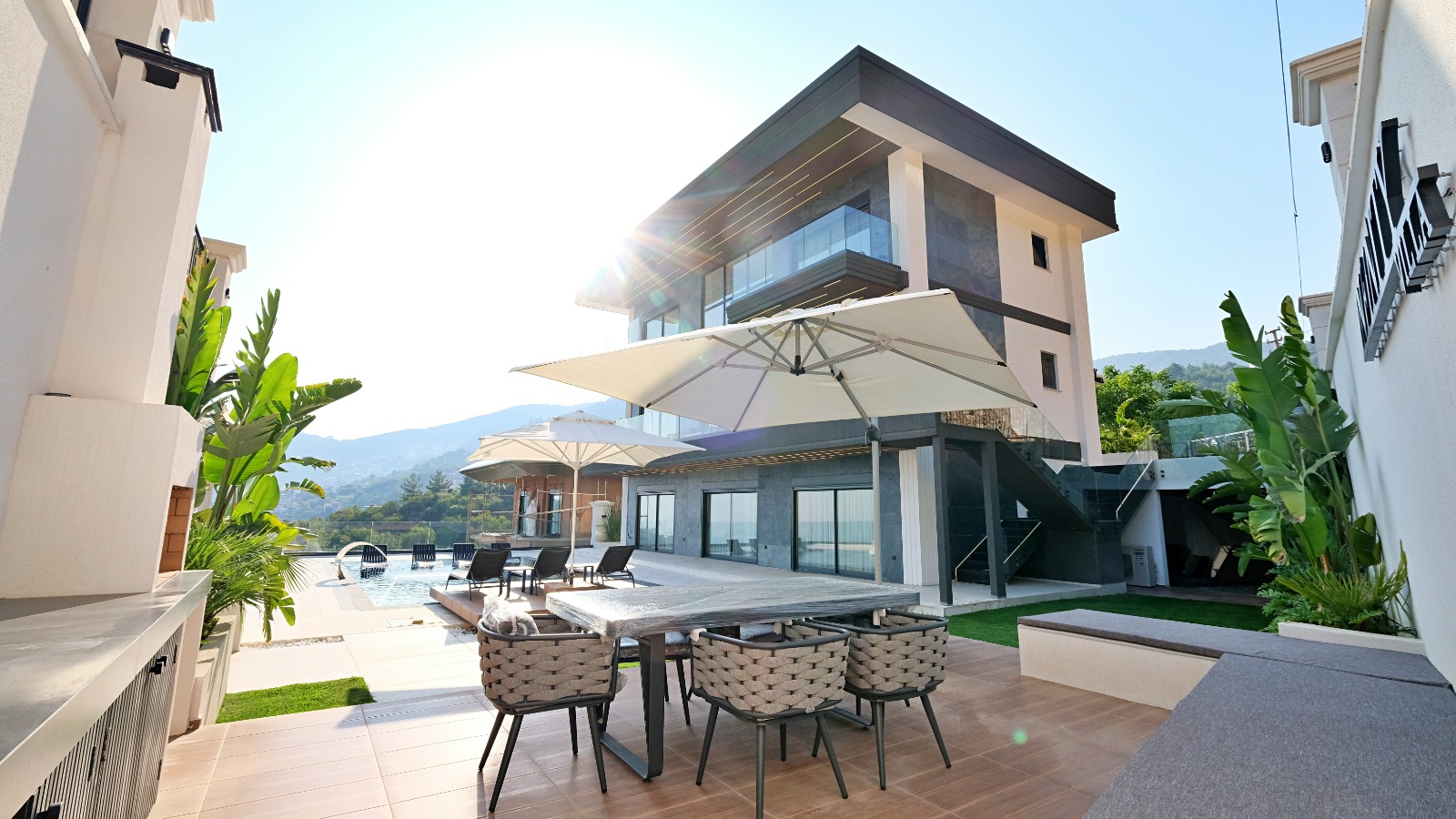 The villa is located in Bektas in the Alanya mountains about max 10 minutes by car to the city center. The villa is 525 square meters divided in 4 floors – from all floors there is stunning view; all over the city, mountains, Alanya Castle and the Mediterranean.