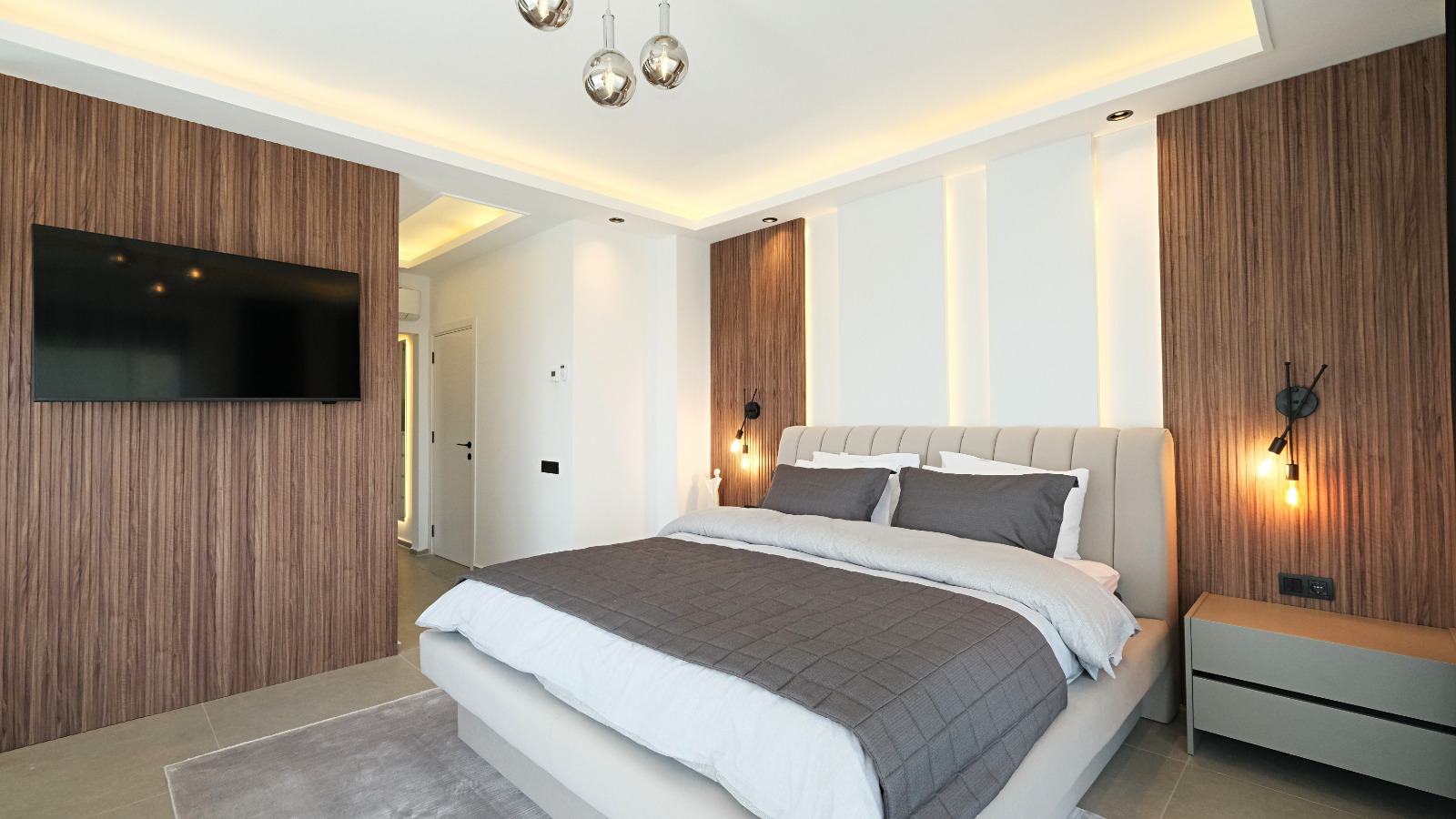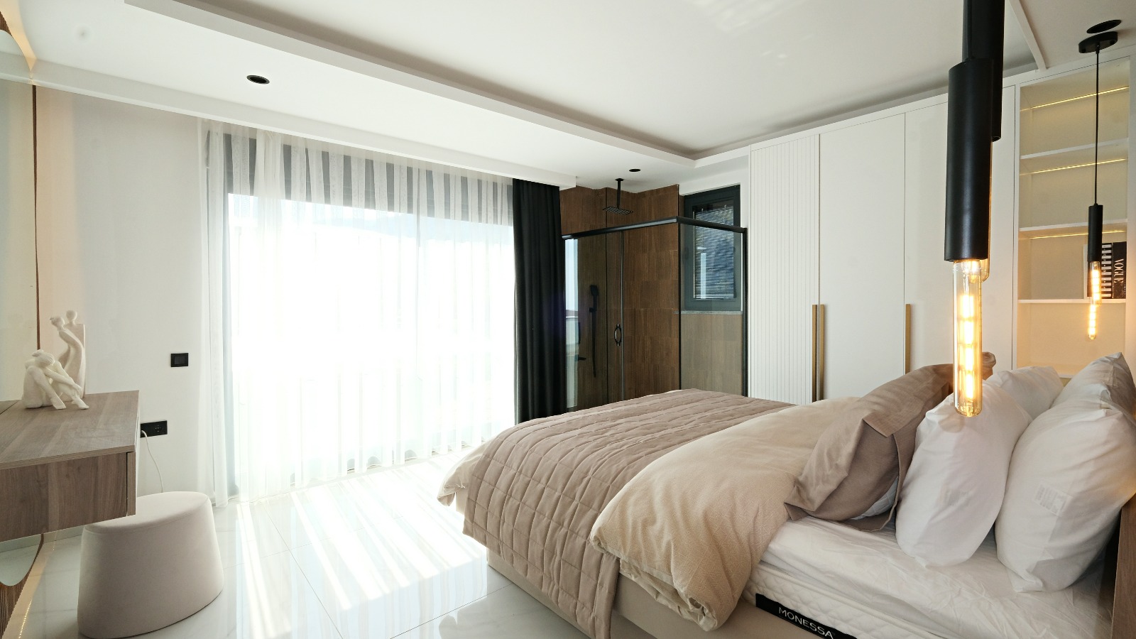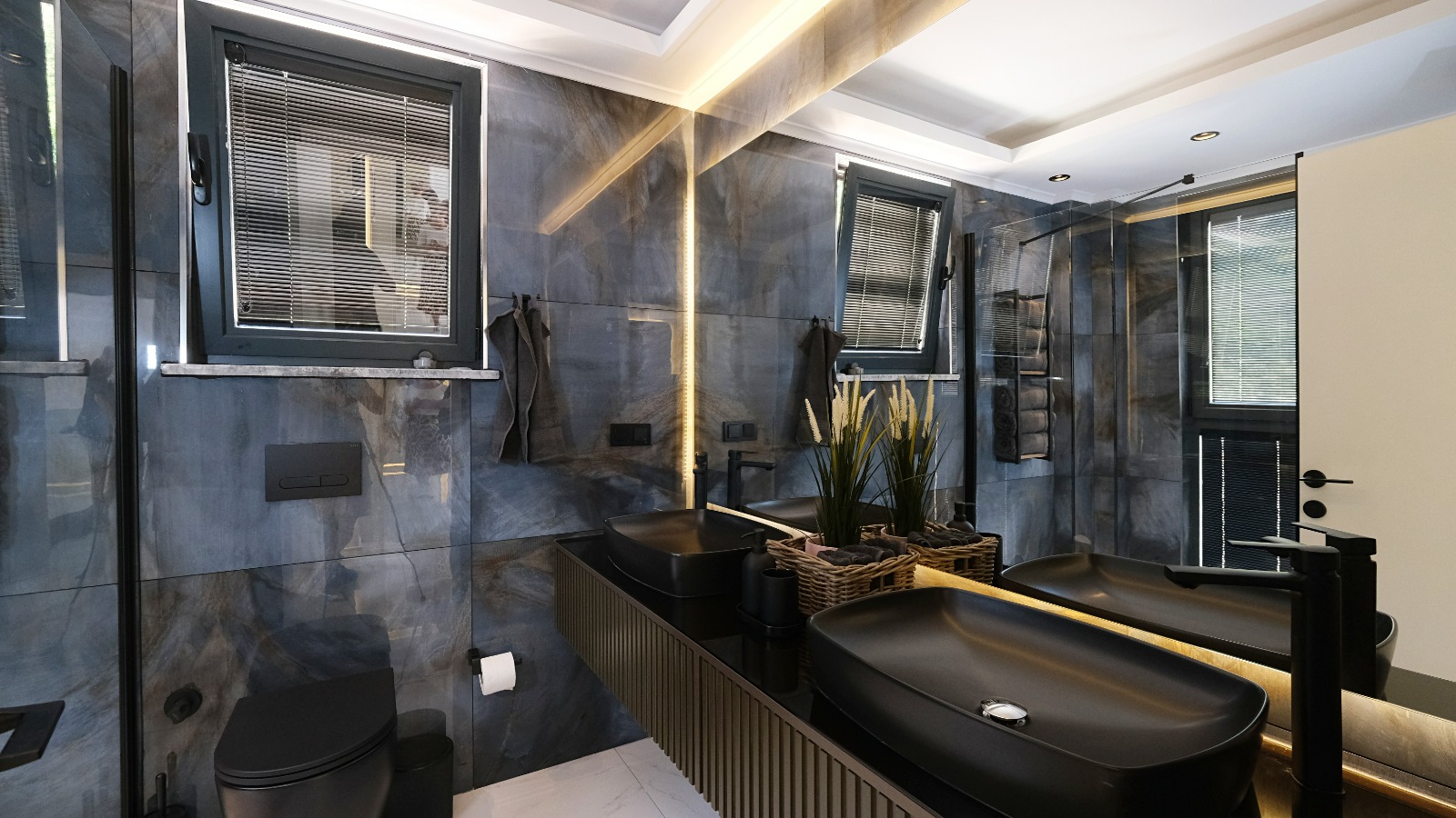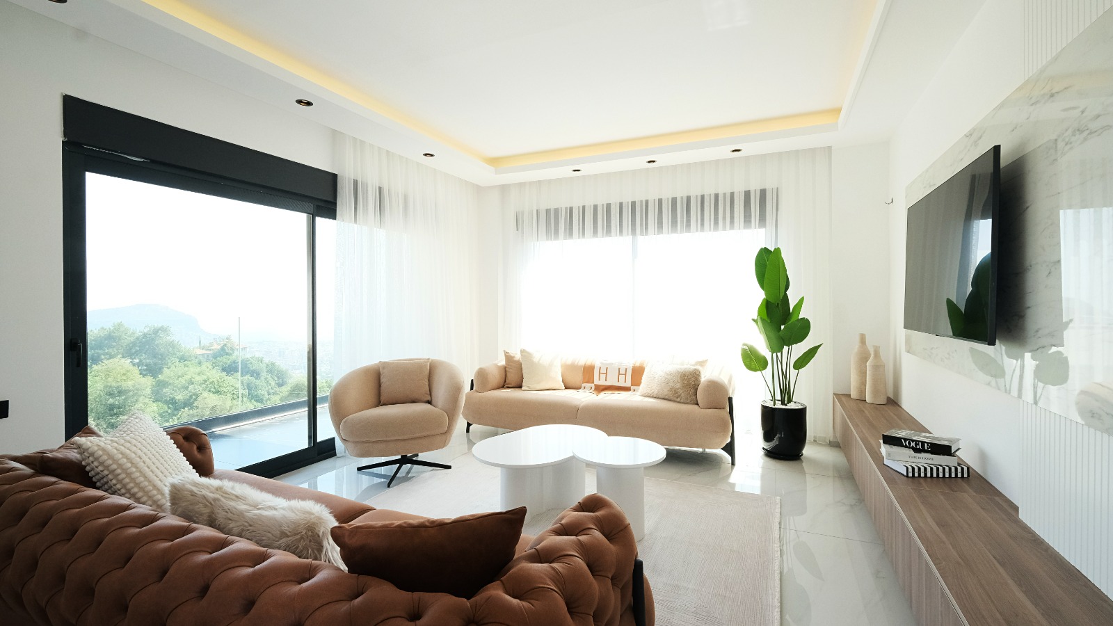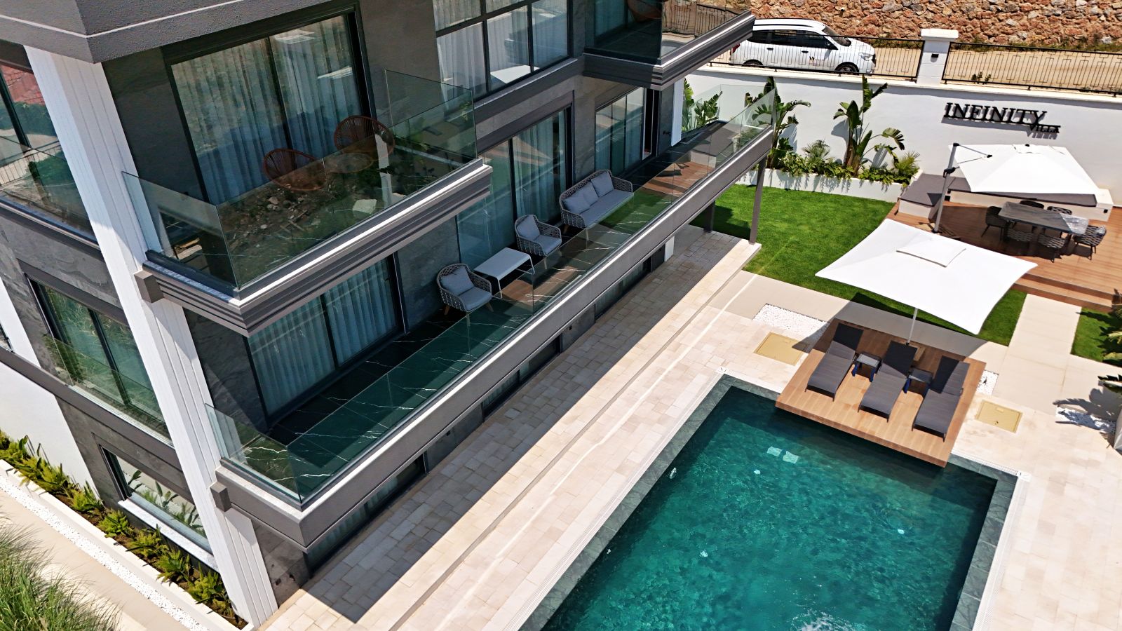 The villa is located in Bektas in the Alanya mountains about max 10 minutes by car to the city center. The villa is 525 square meters divided in 4 floors – from all floors there is stunning view; all over the city, mountains, Alanya Castle and the Mediterranean.