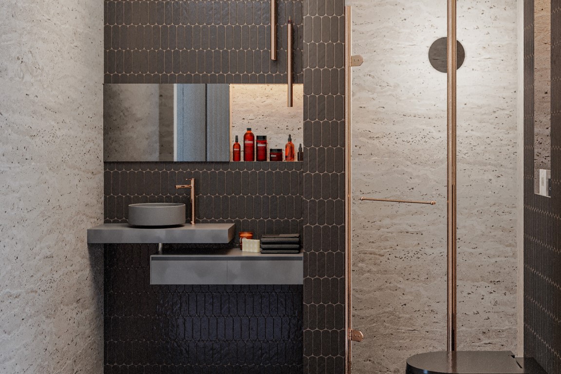 On the ground floor is hall, big livingroom with modern open kitchen, bathroom and bedroom with en-suite bathroom.